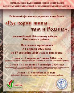 Гомельский районный Совет депутатов при поддержке Гомельского районного исполнительного комитета при активном участии Гомельского районного отделения Белорусской партии «Белая Русь» и Гомельской районной организации ОО «Белорусский союз женщин» запускает новый проект — районный фестиваль деревень и посёлков «Где корни живы — там и Родина».