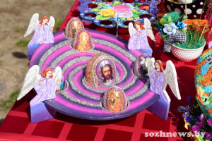 Ураджэнка Гадзічава Людміла Храпунова завітала на свята з Маркавіч, дзе зараз жыве. Разам з сястрой Нінай яны накрылі ля бацькоўскага дома стол с абрадавымі стравамі.