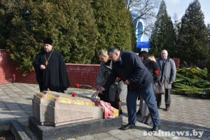 Недалеко от храма расположено воинское захоронение, где покоятся не только воины-освободители, но и мирные жертвы немецкой оккупации, перезахороненные там после обнаружения места массового расстрела недалеко от Красного. Депутаты возложили к монументу цветы и почтили память павших минутой молчания.