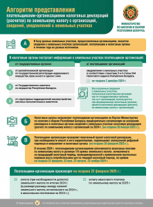 Министерством по налогам и сборам разъяснен порядок представления плательщиками-организациями налоговых деклараций (расчетов) по земельному налогу с организаций, сведений, уведомлений о земельных участках в 2024 году, который представлен на схеме.
