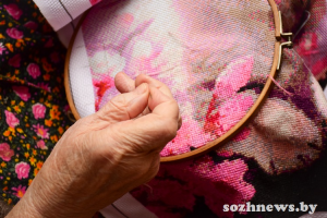 Одной из старейших жительниц агрогородка Поколюбичи Людмиле Дуденко — уже за 90. И вы не поверите: она до сих пор рукодельничает! Более того, как рассказывают родные, именно тогда, когда самочувствие становится хуже, женщина все активнее берется за вышивание. Для нее это и созидательный момент, отвлекающий от боли, и желание показать, что есть еще и силы, и умения.