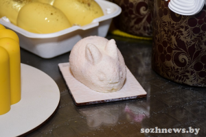 В приготовлении пасхи из творога Екатерина также использует различные интересные рецепты и экспериментирует с формой. Традиционное блюдо у нее бывает не только круглой формы или в виде пирамидки, но и, например, в виде пасхальных яиц или зайчика.
