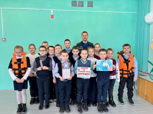 Работники МЧС рассказывают школьникам о безопасности в период весенних каникул. Особое внимание уделяется поведению вблизи водоемов.