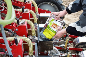 Полевые работы развернулись на полях, отведенных под лук. Здесь в паре работают два трактора: на одном опытный механизатор Юрий Байцым готовит почву, на другом, с агрегатом-сеялкой, — его коллега Николай Федоренко ведет сев лука. Кстати, на этом тракторе к нынешней посевной установили автопилот. Система автоматического управления повышает точность высева, помогает поддерживать оптимальную скорость техники, увеличивает производительность.