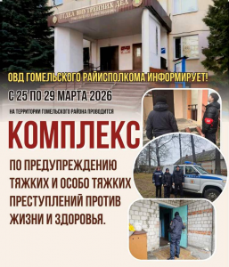 C 25 по 29 марта территории Гомельского района проводится комплекс профилактических мероприятий по предупреждению тяжких и особо тяжких преступлений против жизни и здоровья.
